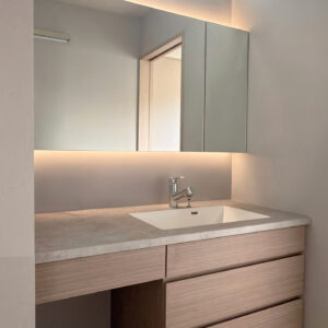 素材の融和がもたらす、心落ち着く洗練のサニタリー
